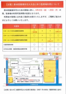 8月23日(土)「第48回綾瀬市花火大会」開催に伴う施設周辺交通規制について 市民文化センター駐車場は閉鎖となります。詳細は花火実行委員会のサイトでご確認お願いいたします。
